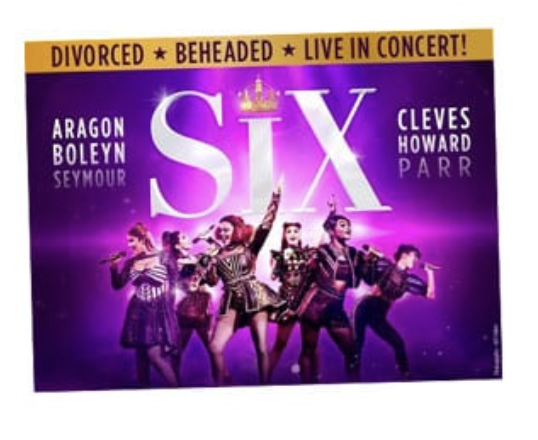 Because people have cultural associations and emotional impressions from colors, the color of key art is extremely important. In “Breaking Down Broadway Key Art“, Holly Reed describes the color purple as usually being “associated with creativity, luxury, and spirituality. It can have a soothing effect and is often used to create a sense of sophistication and elegance” (Reed, 2023). For instance, the key art in Aladdin uses purple to exemplify elegance, luxury and magic when its paired with the gold lettering. Purple is often uses to connote royalty and it is used in SIX’s key art to represent the empowering wives of Henry VIII in the musical.